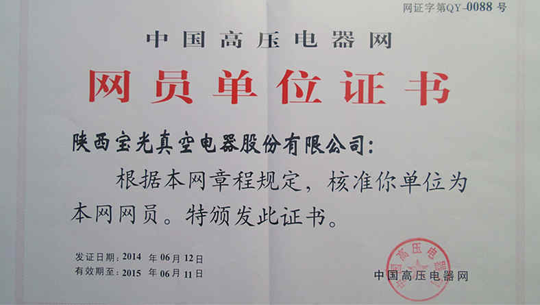 由西安高壓電器研究所主辦的中國高壓電器網經過資格審查,于2014年6月份授予我公司為高壓電器會員單位。