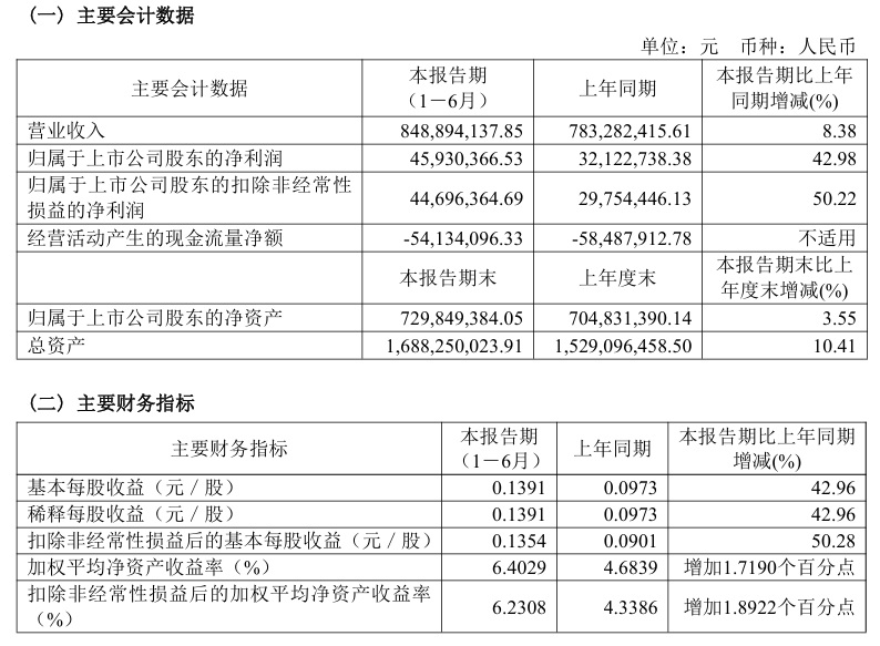 寶光股份2024年半年度主要財務指標