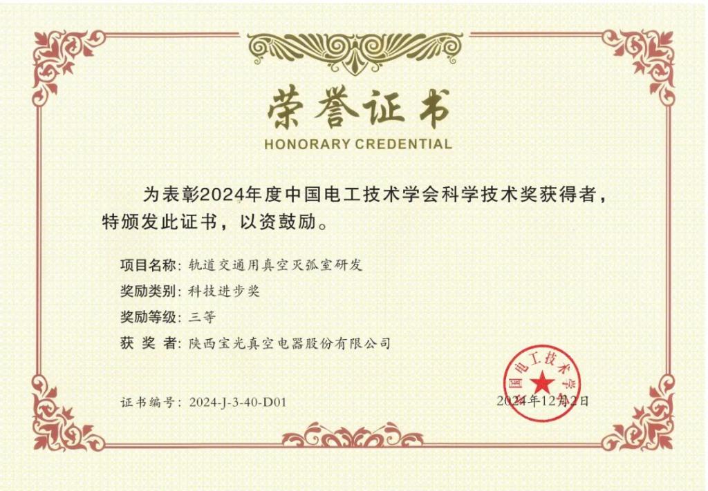 項目名稱:軌道交通用真空滅弧室研發(fā)。項目簡介:本項目研發(fā)出的BGH2570、BGH2580、BGH2590/R、BGH2530等系列化產(chǎn)品,可替代進口產(chǎn)品。4種產(chǎn)品全部通過了裝車運行驗證,部分產(chǎn)品實現(xiàn)了小批量供貨。其中BGH2570型產(chǎn)品于2023年9月通過了中國機械工業(yè)聯(lián)合會產(chǎn)品鑒定,技術(shù)水平達(dá)到國際領(lǐng)先。2021年至2024年累計銷量超過1000只,累計銷售額超過超過600萬元。
